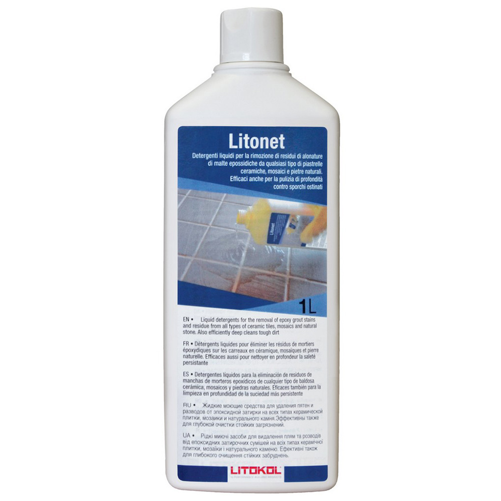 LITONET PRO — предназначен для очистки поверхностей, облицованных различными типами облицов- ки от загрязнений после применения эпоксидных составов EPOXYSTUK X90, LITOCHROM STARLIKE, STARLIKE CRYSTAL.