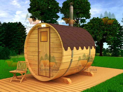 Возвращаясь к схеме устройства бани-бочки, отметим, что от простейшей конструкции — деревянный наборный цилиндр из досок, внутри которого находится печка и пара полков (мебель никогда не окажется лишней в бане) — идея постепенно развивалась в двух направлениях: удешевления производства или удорожания для создания максимального комфорта. Однако, чем больше комфорта, тем меньше мобильность.