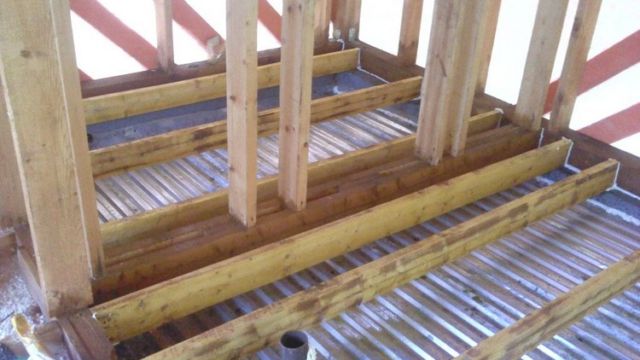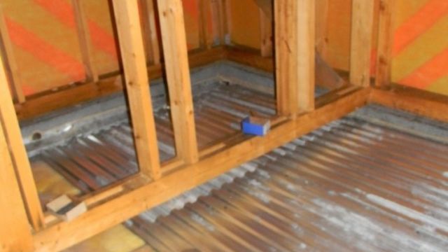В это время основное внимание следует уделять вопросу, как баня, слив корреспондируют между собой. Необходимо избегать пересечения сливных труб и желобов с коренными элементами такими, например, как половые лаги. В это же время задается угол уклона желоба, оформляются повороты, примыкания, переливы.