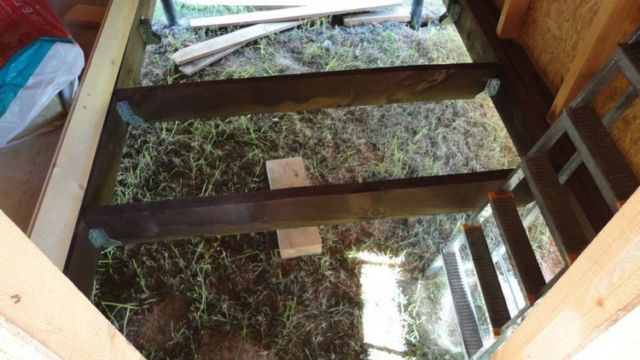 Пойдем от простого, к сложному. Самым доступным, а возможно и примитивным способом организуется слив воды из бани путем обустройства проливных полов. Полы такого типа представляют собой деревянный настил, уложенный на лаги с зазорами между соседними элементами. То есть в итоге мы получаем пол со щелями, через которые вода свободно, не задерживаясь проходит в приямок, из которого либо отводиться, либо тут же и собирается и впитывается в почву.