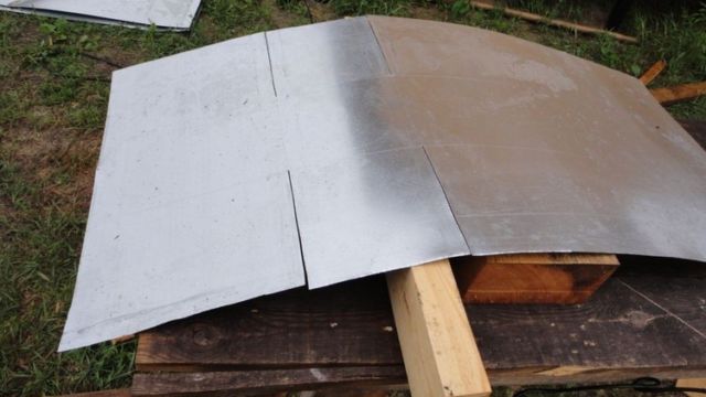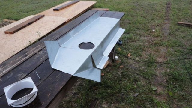 Боковые стенки покрышек срезаются с помощью строительных электроинструментов (электролобзик, болгарка). Также необходимо вырезать отверстие для того чтобы вставить туда трубу, и организовать сток. Из подготовленных покрышек сооружается своеобразная пирамида до верха ямы, а внизу укладывается гравийно-песчаная подушка. Вместо бетонной плиты и стяжки такие ямы закрываются куском листового металла.