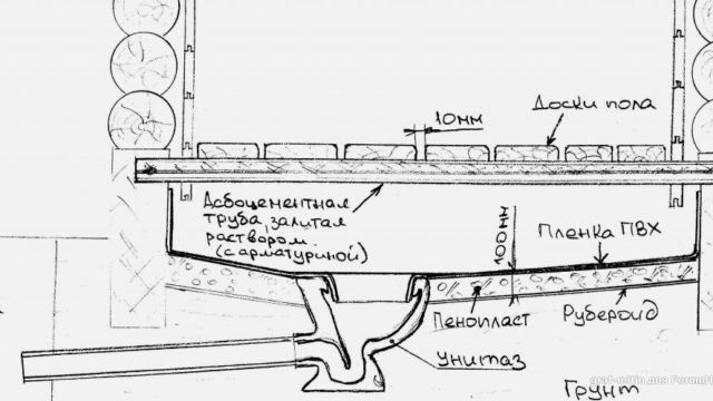 Прокладка сливной трубы из бани